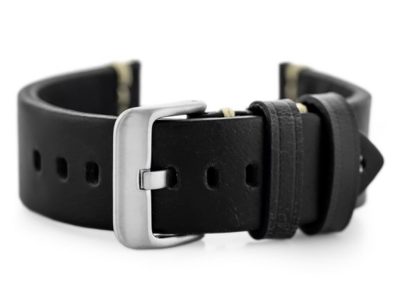 Pasek skórzany do zegarka W32 - czarny - 24mm
