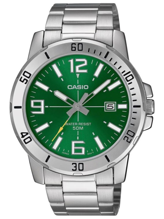 Zegarek męski CASIO MTP-VD01D-3B to połączenie klasycznej elegancji i nowoczesnej funkcjonalności, które sprawia, że ten czasomierz doskonale sprawdzi się w każdej sytuacji. Ten model to idealny wybór dla mężczyzn, którzy cenią sobie ponadczasowy design i niezawodność w codziennym użytkowaniu. Srebrna, okrągła koperta ze stali szlachetnej nadaje zegarkowi wyrafinowanego charakteru, a jednocześnie zapewnia trwałość i odporność na uszkodzenia. Jej kształt i detale sprawiają, że zegarek doskonale komponuje się zarówno z eleganckimi garniturami, jak i bardziej casualowymi stylizacjami.