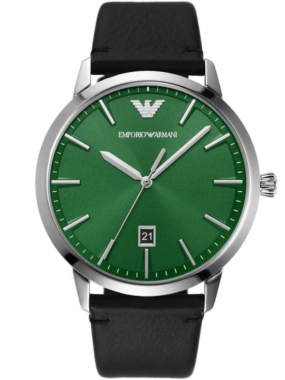 Zegarek Emporio Armani AR11509 jest przykładem eleganckiego, klasycznego zegarka męskiego. Kopertę wykonano z wysokiej jakości stali szlachetnej z powłoką w kolorze srebrnym. Tarcza jest w kolorze modnej zieleni z indeksem w kolorze srebrnym, na tarczy znajduje się również datownik oraz logo marki. Pasek ze skóry naturalnej w kolorze czarnym zapewnia elegancje oraz swobodę noszenia. Zegarek Emporio Armani AR11509będzie idealnym dodatkiem do męskiej garderoby.